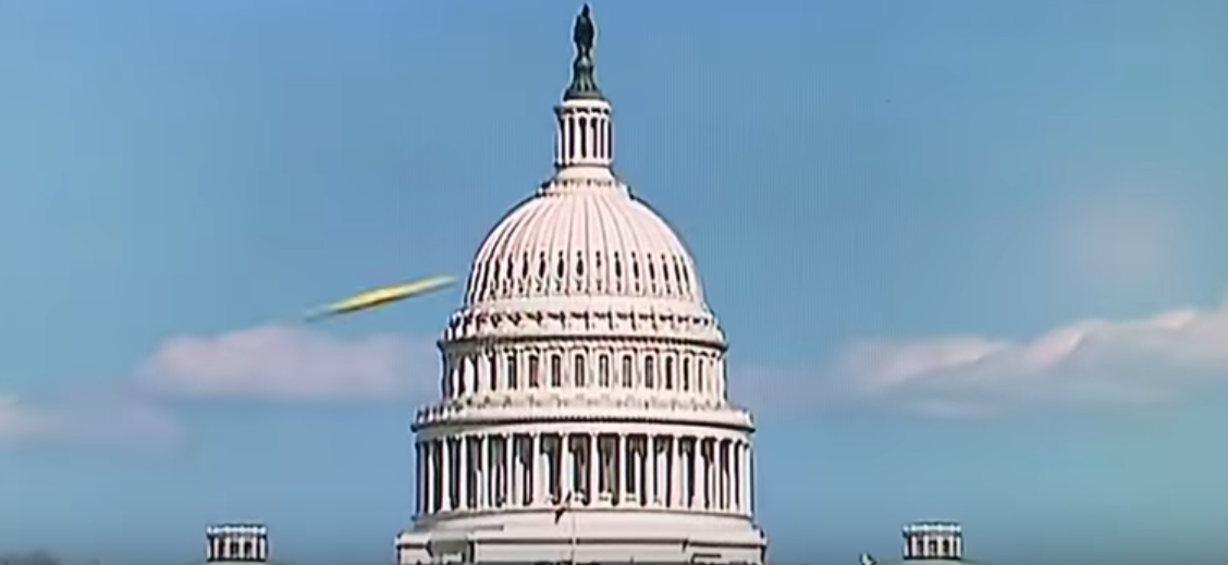 他のUFOと同じく超高速で動き、アメリカ合衆国議会議事堂のドーム型の屋根を背景に飛び去っていきます。